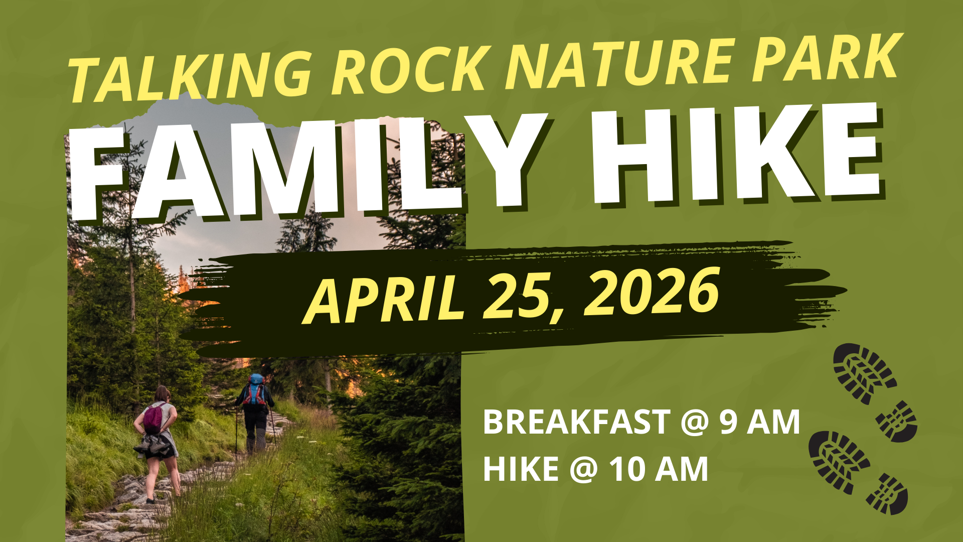 We’ll meet at 9:00 AM for breakfast, then head over to Talking Rock Nature Park for a fun, family-friendly hike!