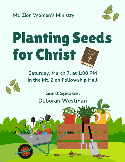Mt. Zion's Women's Ministry invites all ladies to a fellowship on Saturday, March 7.
